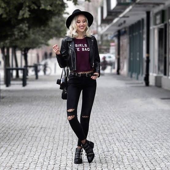A Devil may care attitude is the most important thing in this fashion other than the edgy fashion style staples like the skinny leather pants/jeans, black boots or spiky heels , Vintage t-shirts with patches (lots and lots of them) bomber/motorcycle jackets and dark colours, both in garments, accessories and for make up.The followers of this style always wear form-fitting clothes. Other distinguishing style statements are black nail polish, studs in all their clothing, lots of jewellery including chunky bracelets and spikey necklaces.13. Goth Fashion