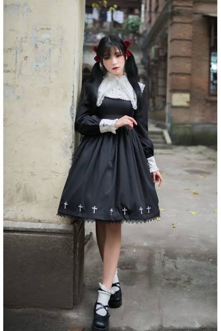 This refers to big girls dressing like a little girl – It is a cute fashion meant for the teens and girls in their early 20s. The wardrobe in this fashion would include frilly petticoats, dresses with puffy sleeves, cute headwears, printed socks, light jackets, cute collars, cuffs and gloves.16. Gothic Lolita Style